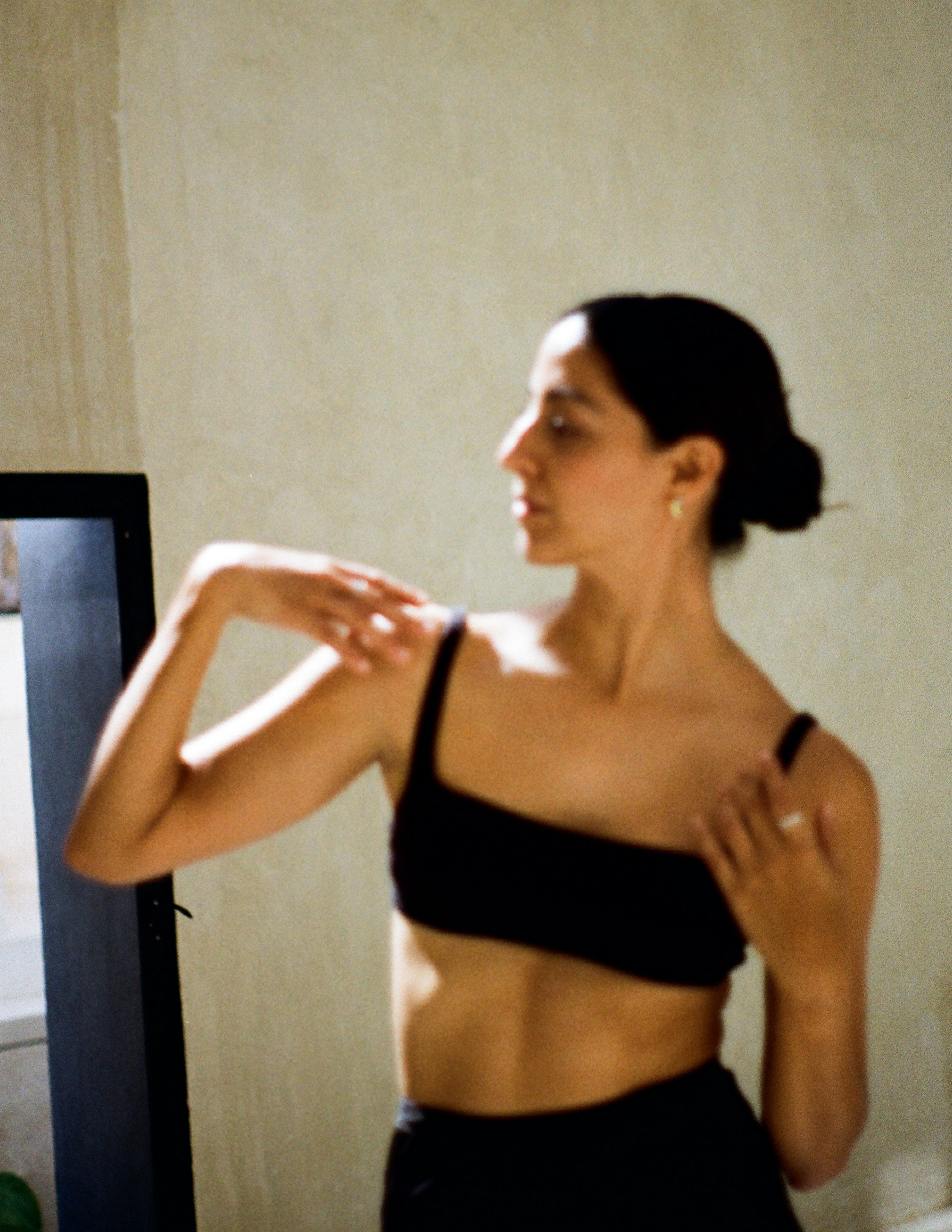 Esta serie nace de un encuentro íntimo entre dos personas que se conocen desde hace tiempo. Ella, bailarina; yo, detrás de la cámara. Su deseo era claro: habitar y atesorar el presente de su cuerpo —su forma, su fuerza, su movimiento— antes de que el tiempo siguiera su curso. Lo que sucedió fue más que un retrato: un diálogo silencioso entre gesto, luz y espacio.