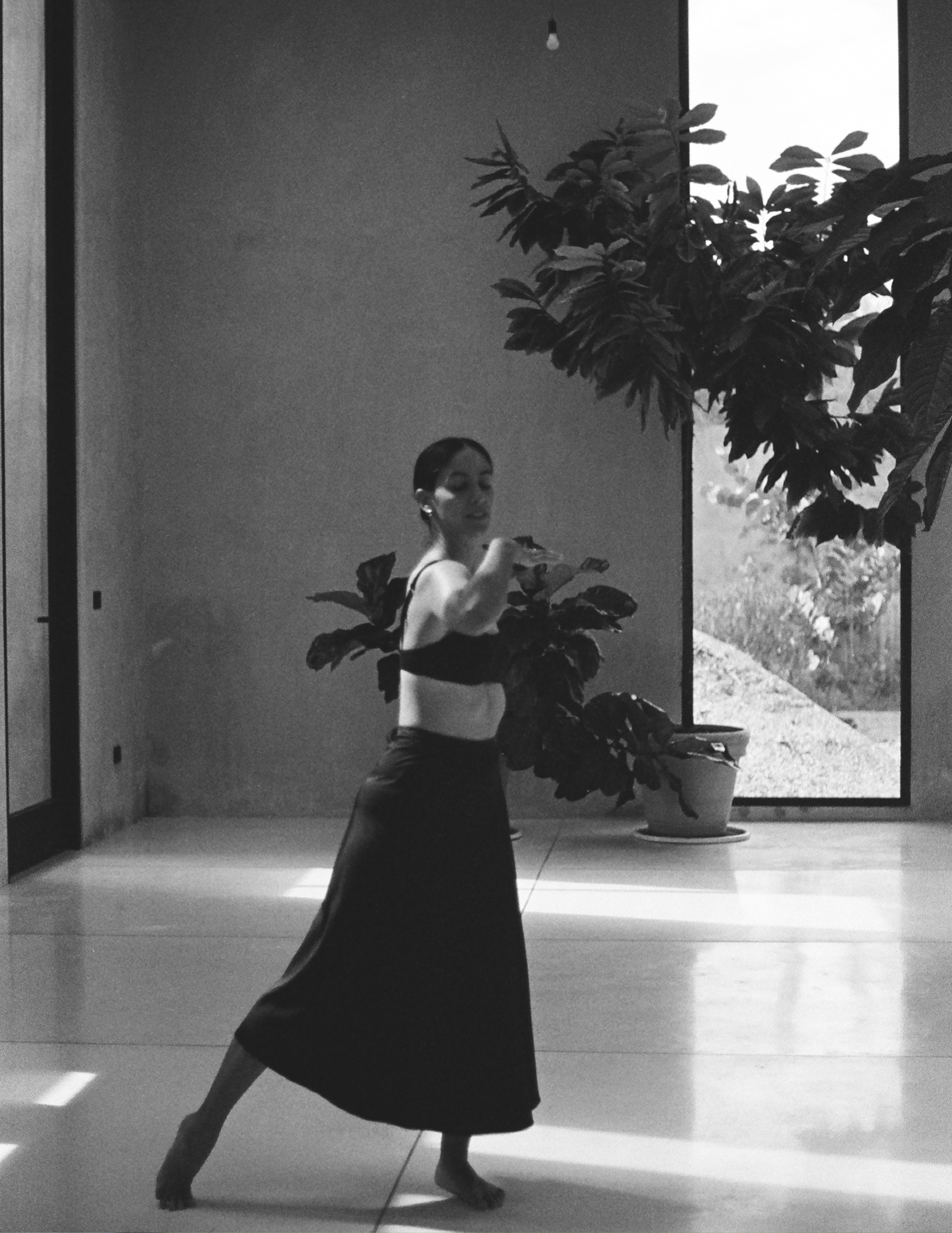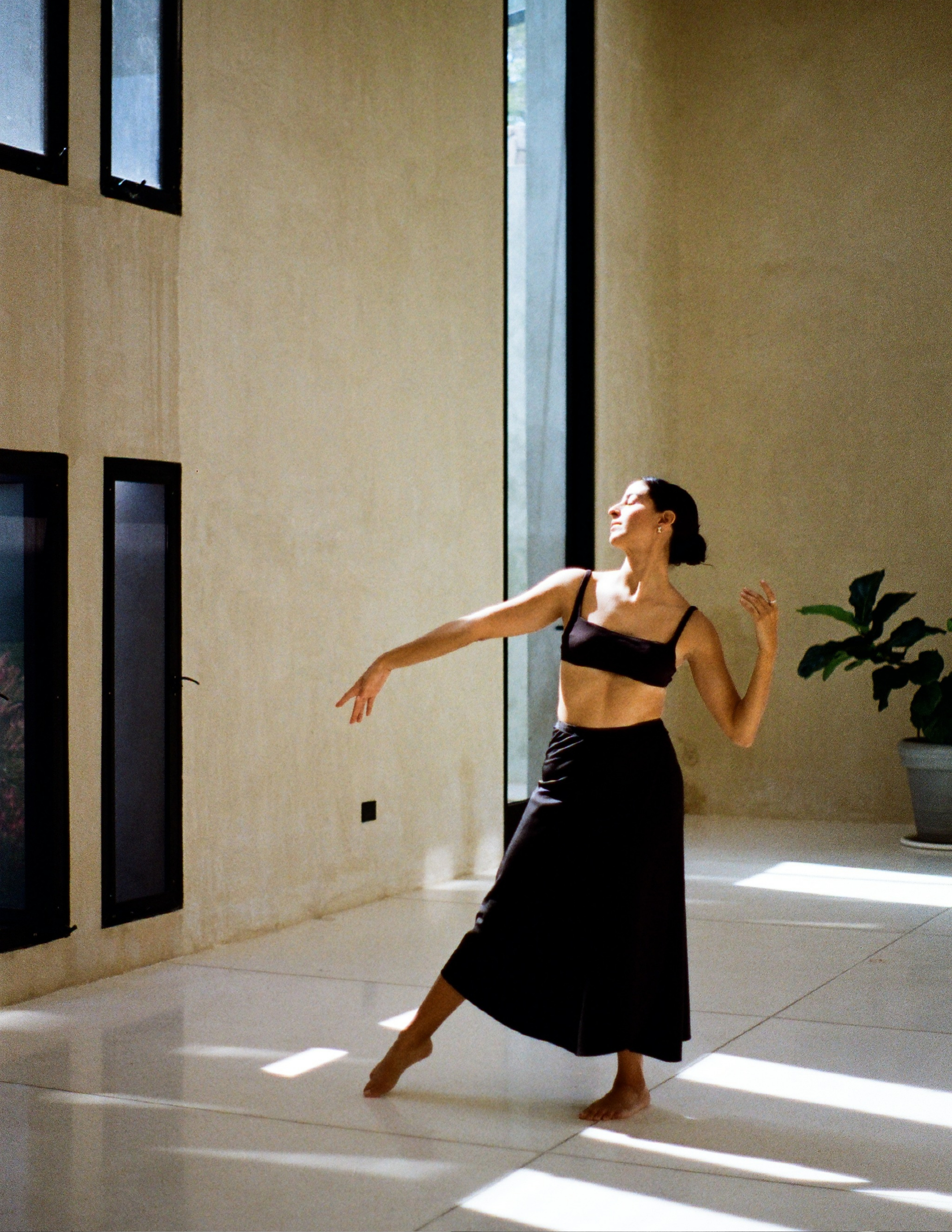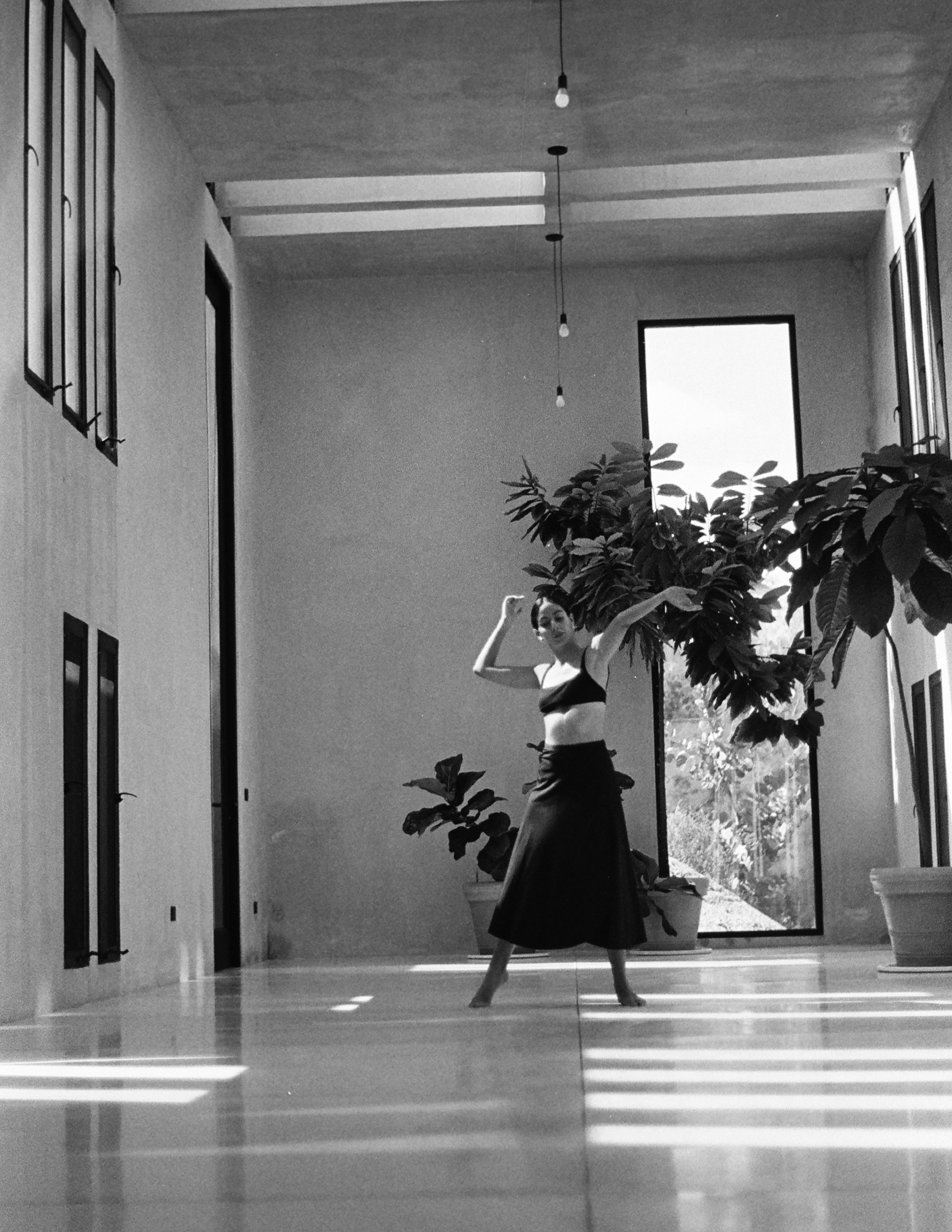 Mi papel fue sostener la espera. Dejar que el ritmo lo marcaran ella, la luz y la arquitectura, y reconocer el instante en que todo se alineaba: un brazo extendido hacia el sol, una sombra cruzando el suelo, un gesto que se vuelve imagen. Fotografiar aquí fue un ejercicio de escucha, una danza silenciosa entre el cuerpo que se mueve y el ojo que observa.